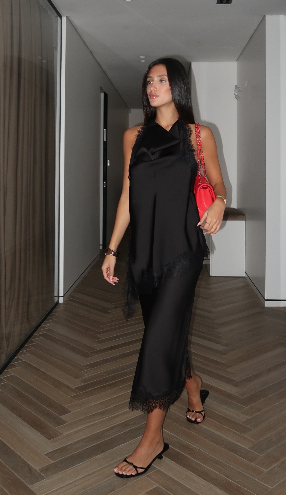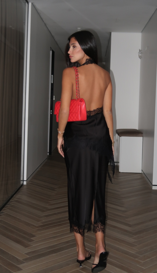 וחצאית מידי עם שסע אחורי אלגנטית.