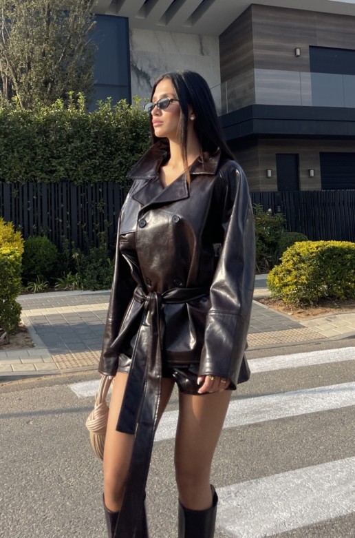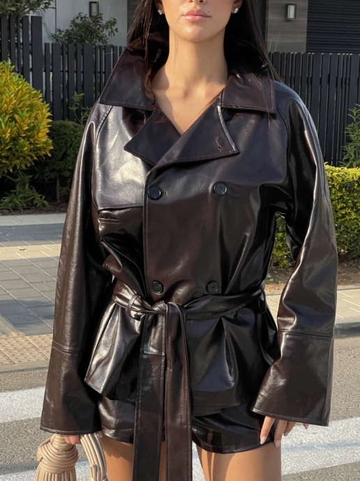 חליפה עשויה דמוי עור בגוון חום בורדו כהה