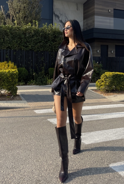 בשילוב מכנס קצר בקו תואם אלגנטי